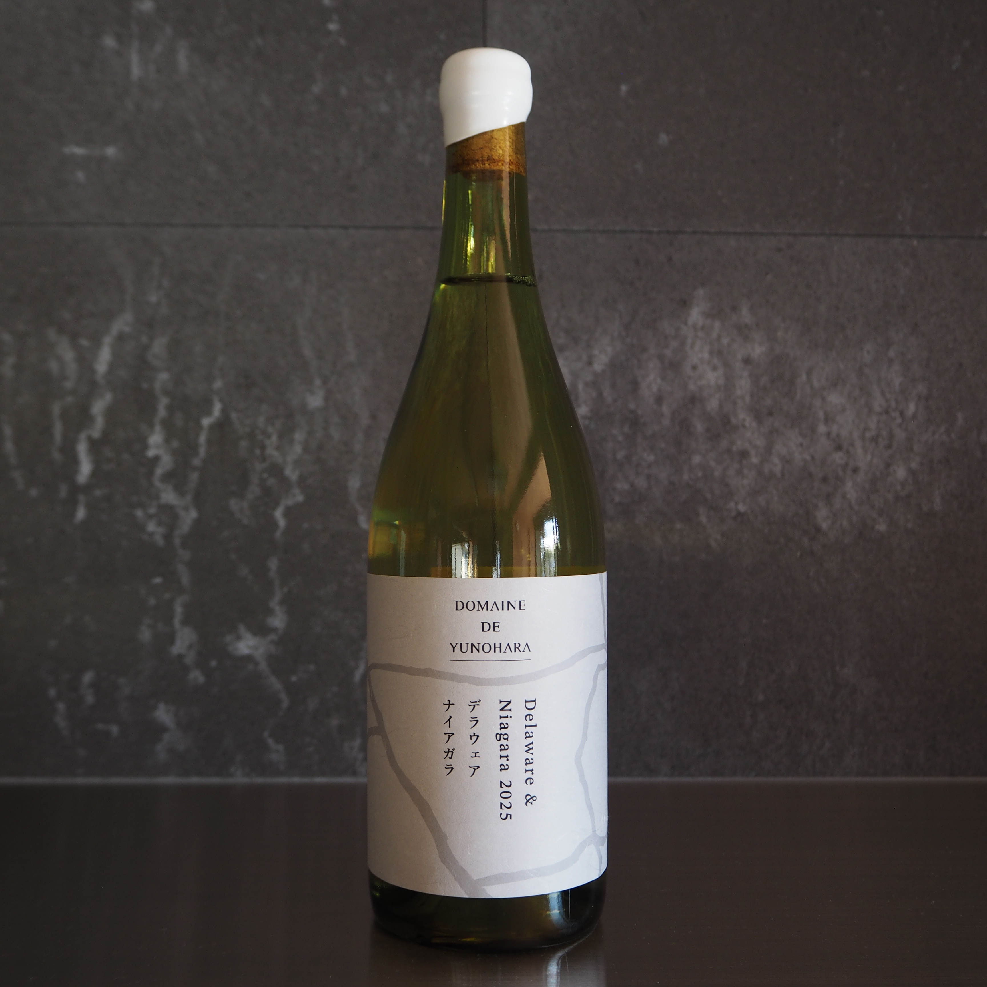 This table wine is made from Delaware and Niagara grapes which are locally grown in Yamabe, Nagano. Fermented separately at low temperature and blended after fermentation, the wine expresses freshness, clarity and quiet sense of place.
