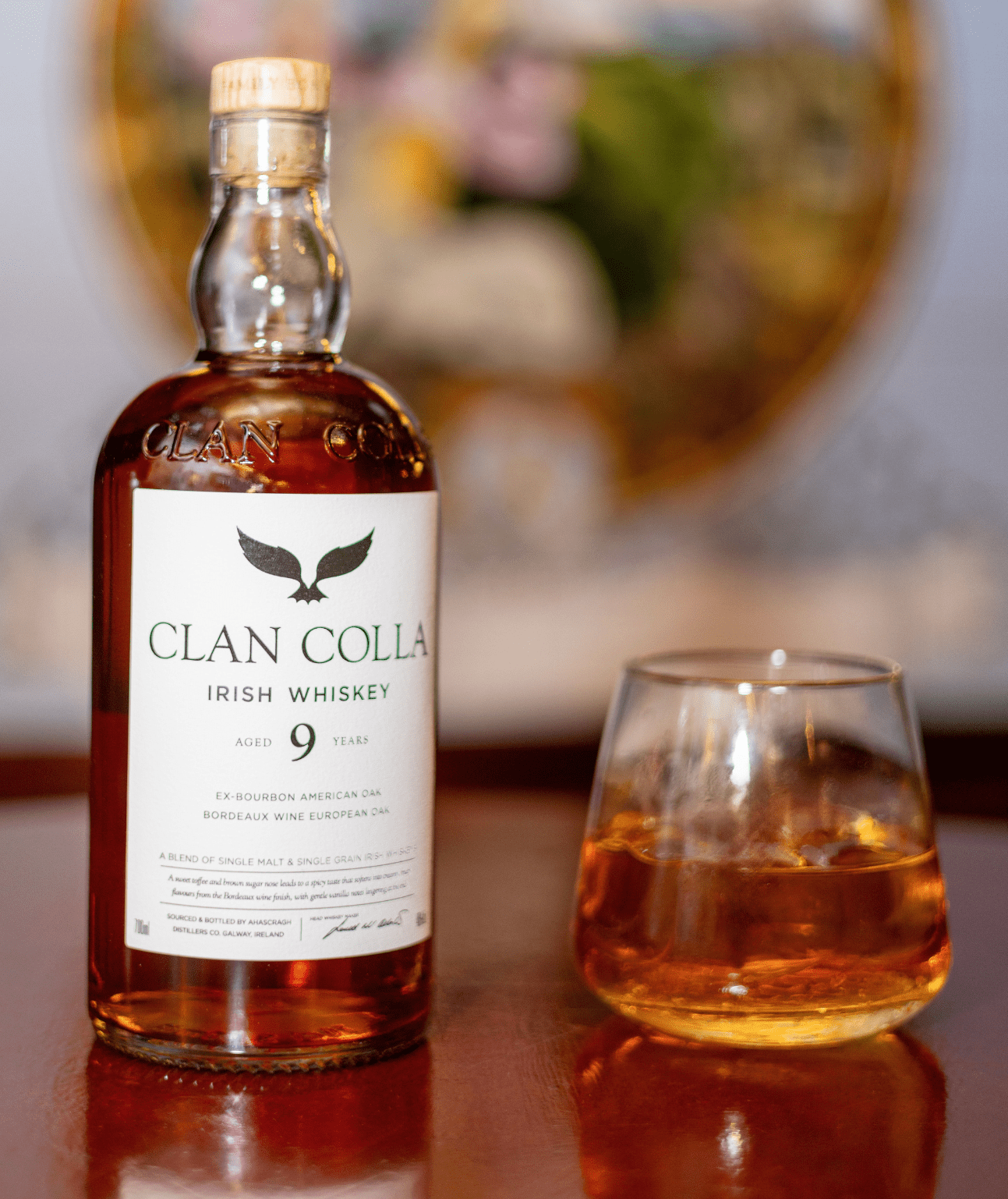 - Clan Colla 9 Year Old Irish Whiskey is a premium blended Irish whiskey finished for 9 months in Bordeaux red wine casks delivering a brilliant hue of red on this delicious and fruity whiskey.