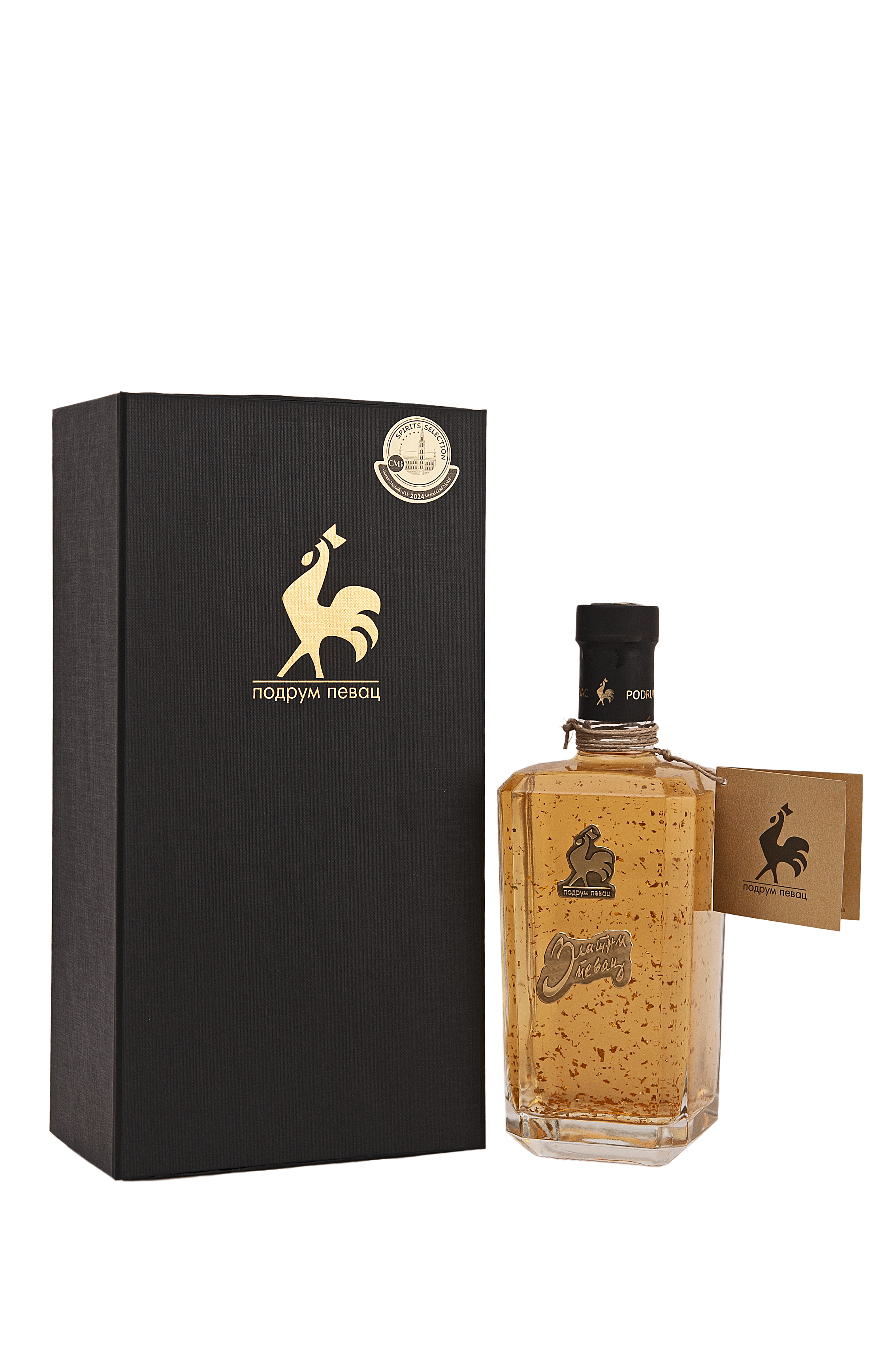 enriched with 23 carat gold leaves, is a selection of the highest quality fruits, fermented under controlled conditions, with a long maceration of the fermented crushed fruit. Selected distillates produced on the distillation column are aged in selected oak barrels with a volume of 500